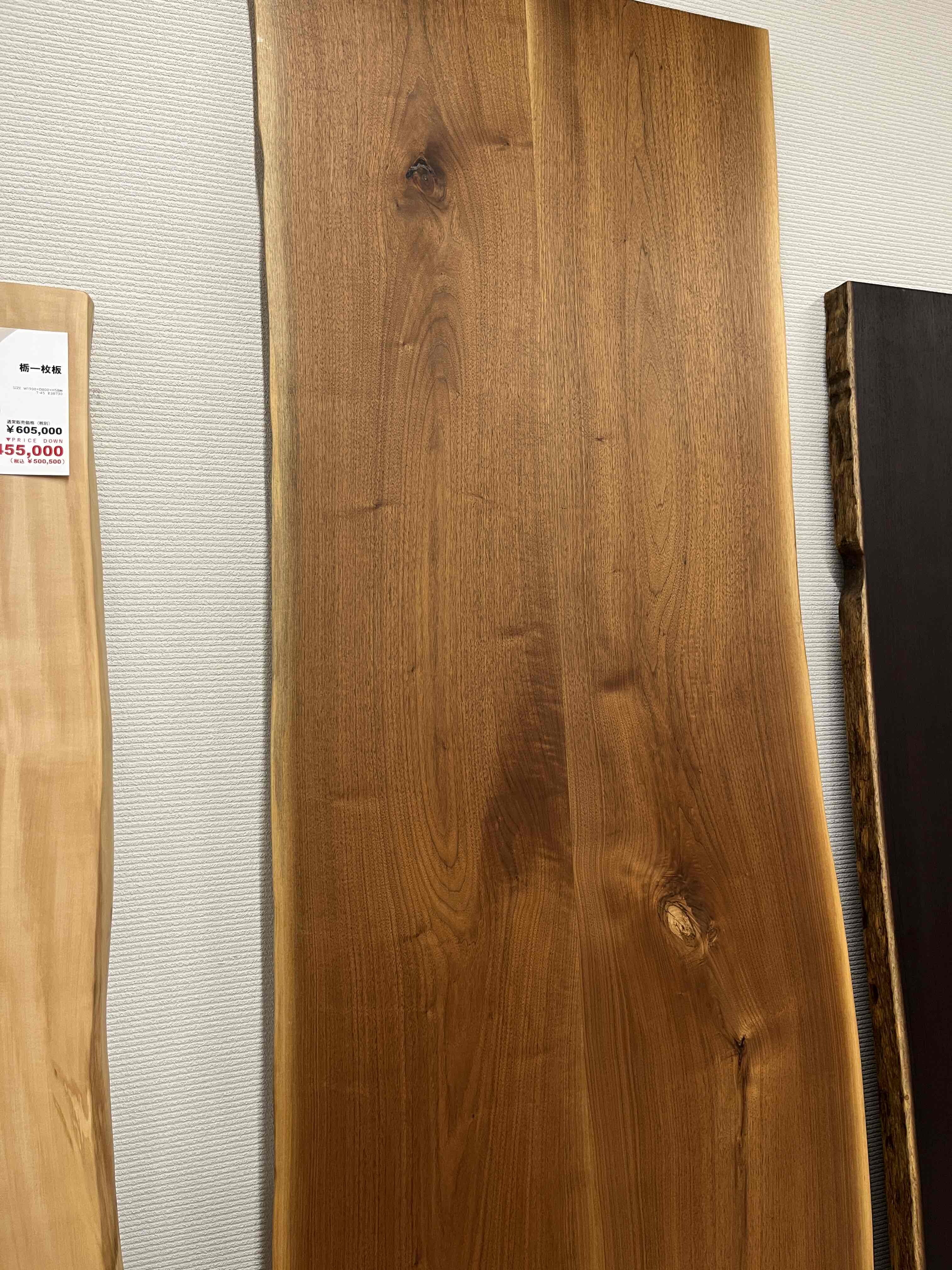 ウォルナット2枚ハギ板 サイズ 長さ2480×奥行940×厚み38 ㎜ 素材 ウォルナット(2枚ハギ オイル塗装) 特徴 2480㎜の大きなウォルナット2枚ハギ無垢板です。お店屋さんにも人気のサイズです。節の入り方がとてもきれいです。 お問い合わせはこちら (オイル塗装) 関連商品 クスノキ一枚板 ブラックチェリー一枚板 ブビンガ一枚板 ゼブラウッド一枚板