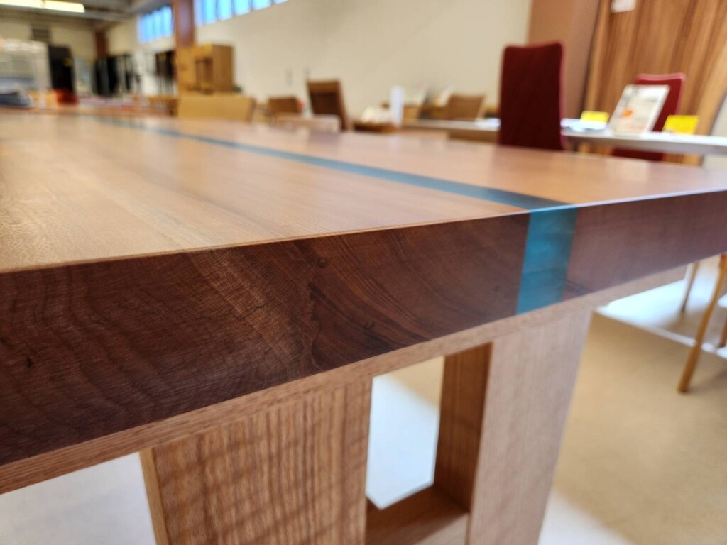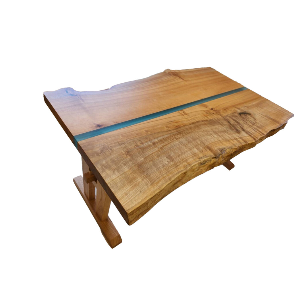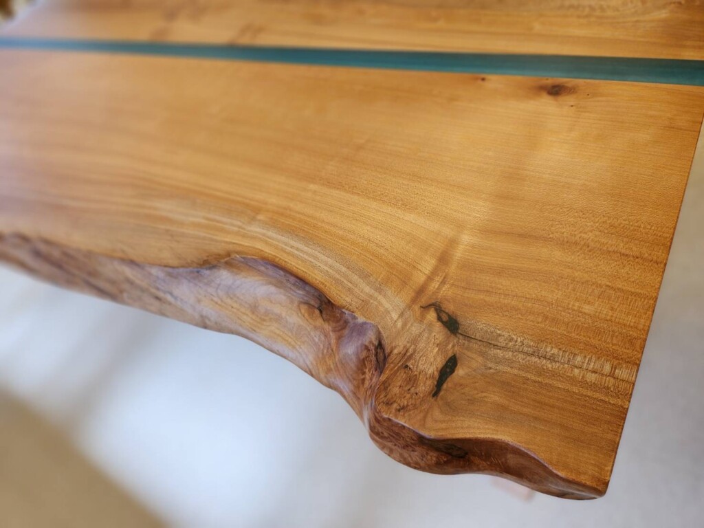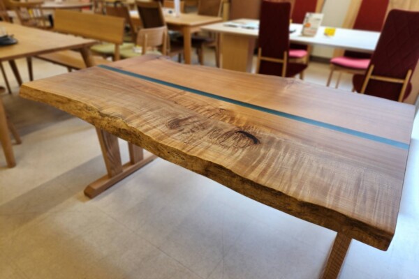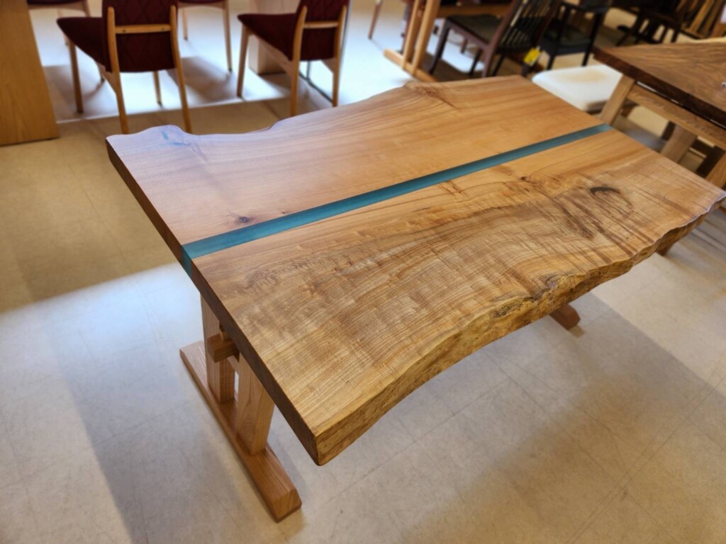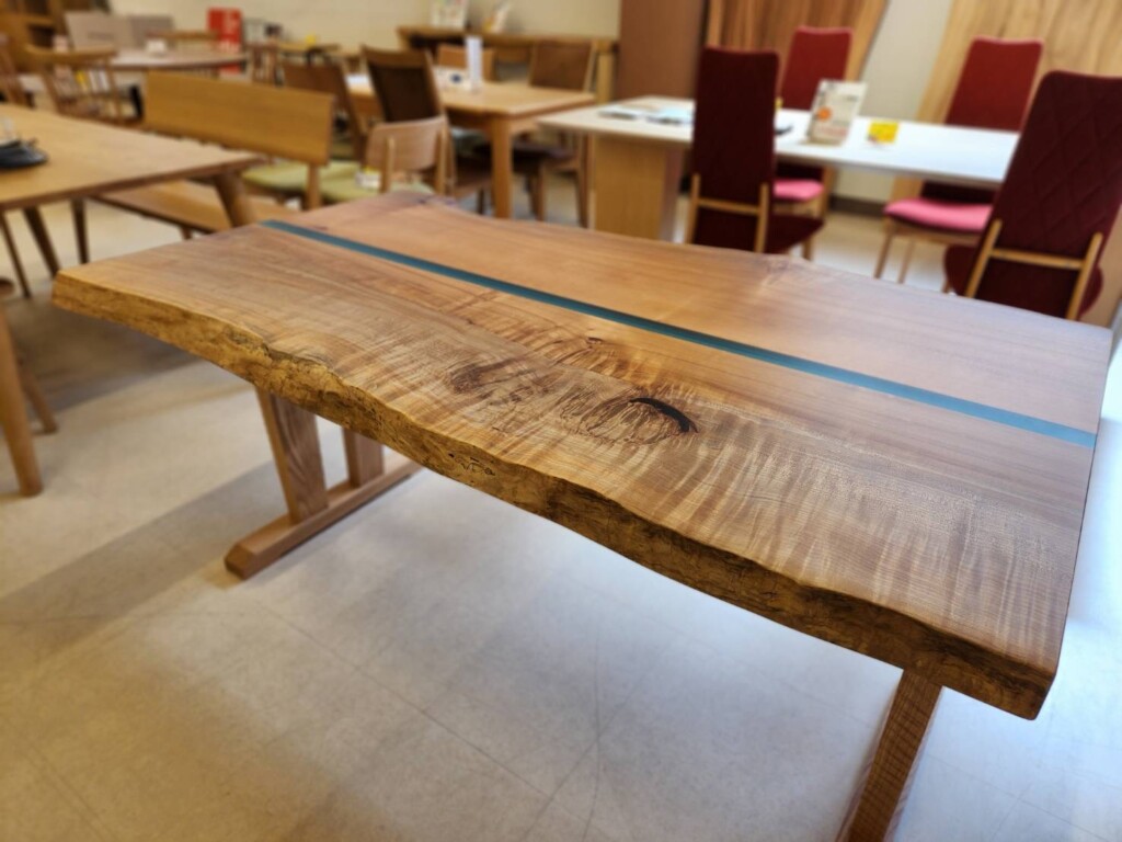 メープル 一枚板 サイズ 長さ1500×奥行950×厚み53㎜ 素材 メープル 特徴 センターにブルーのレジンを加工したスタイリッシュなメープル一枚板です。 独特の形とレジンのハーモニーが味わい深い逸品です。 お問い合わせはこちら 関連商品 細脚 ケヤキ 一枚板 モンキーポッド一枚板 金属脚A型