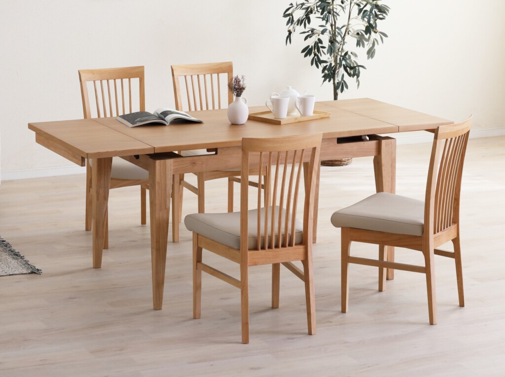 CAROLE サイズ 80伸長テーブル W80/100/120×D80×H72 cm 120伸長テーブル W120/150/180×D80×H72 cm チェア W47×D53×H85(SH43) cm 素材 天板 ホワイトオーク突板/ウォールナット突板 脚 ラバーウッド チェア ラバーウッド ブランド CAROLE(カロル) お問い合わせはこちら 用途に合わせて2段階伸長 2人掛け→4人掛け、4人掛け→6人掛け、それぞれ2段階伸長可能なダイニングセット。 関連商品 Coro Mirage Rebel Greek