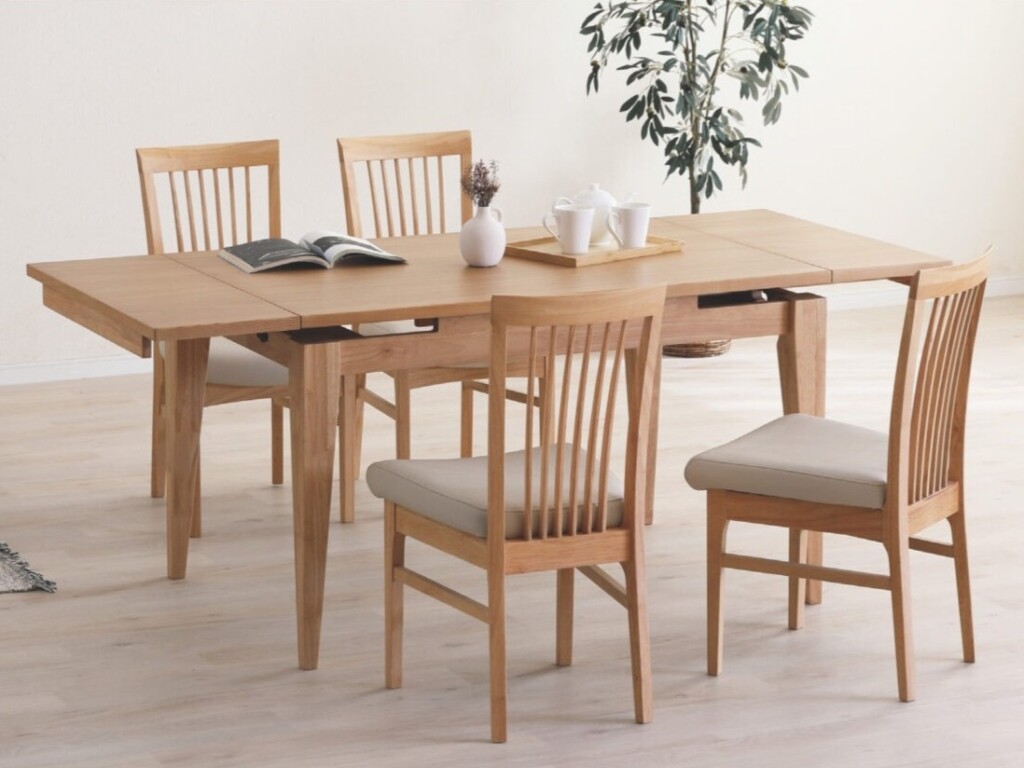 CAROLE サイズ 80伸長テーブル W80/100/120×D80×H72 cm 120伸長テーブル W120/150/180×D80×H72 cm チェア W47×D53×H85(SH43) cm 素材 天板 ホワイトオーク突板/ウォールナット突板 脚 ラバーウッド チェア ラバーウッド ブランド CAROLE(カロル) お問い合わせはこちら 用途に合わせて2段階伸長 2人掛け→4人掛け、4人掛け→6人掛け、それぞれ2段階伸長可能なダイニングセット。 関連商品 ANELO Rigala 和華&香乃 BiscuitStool