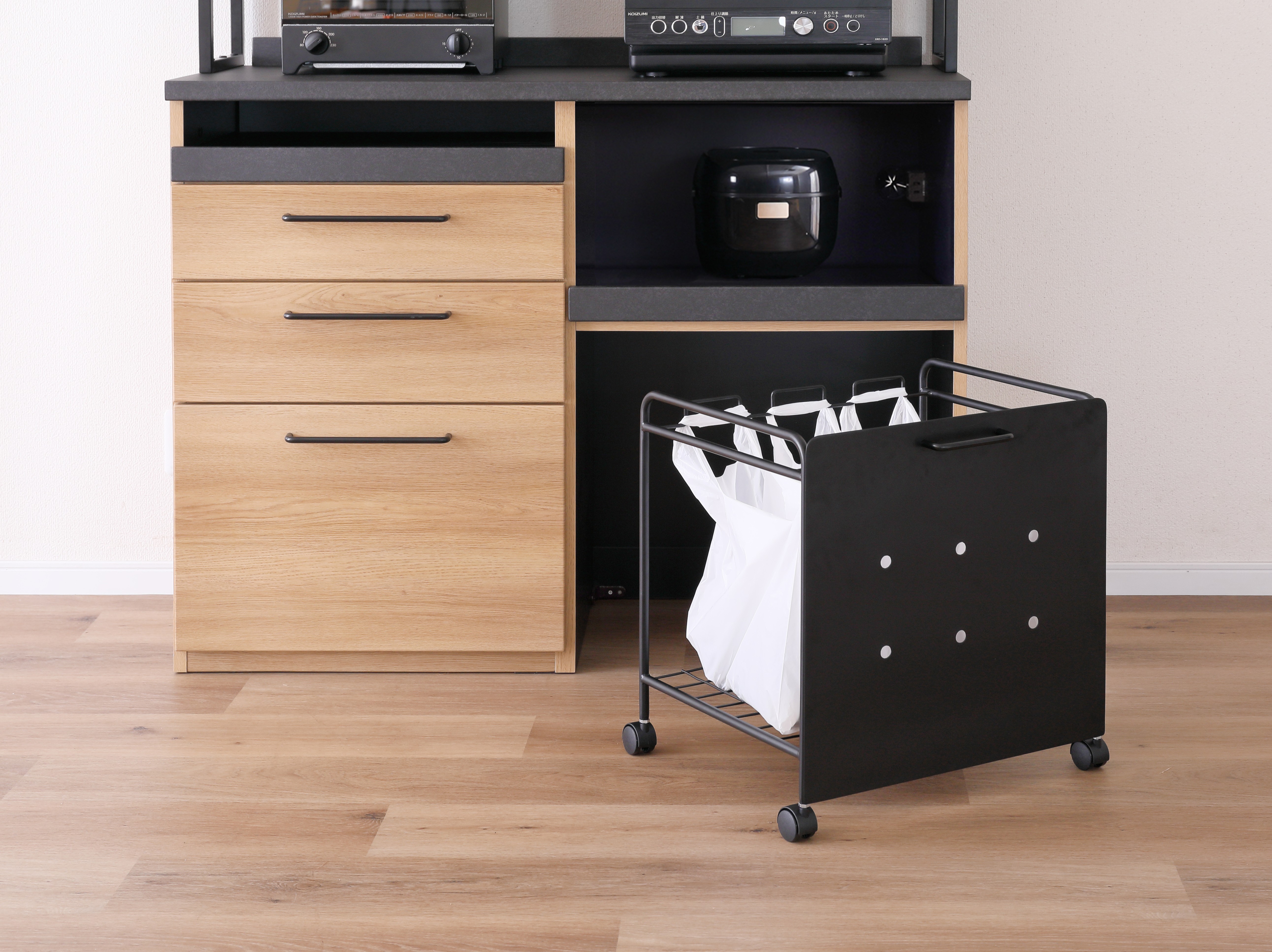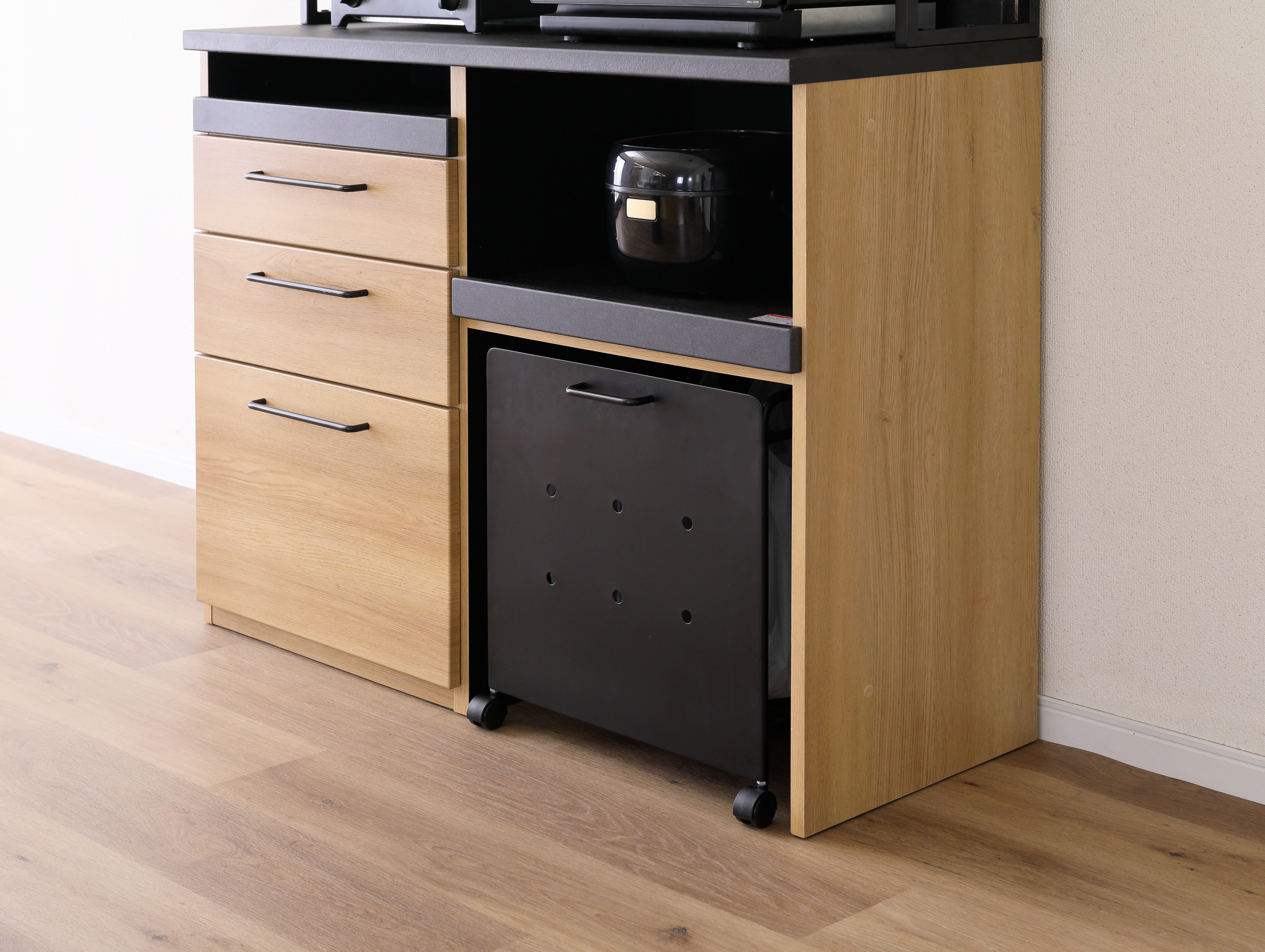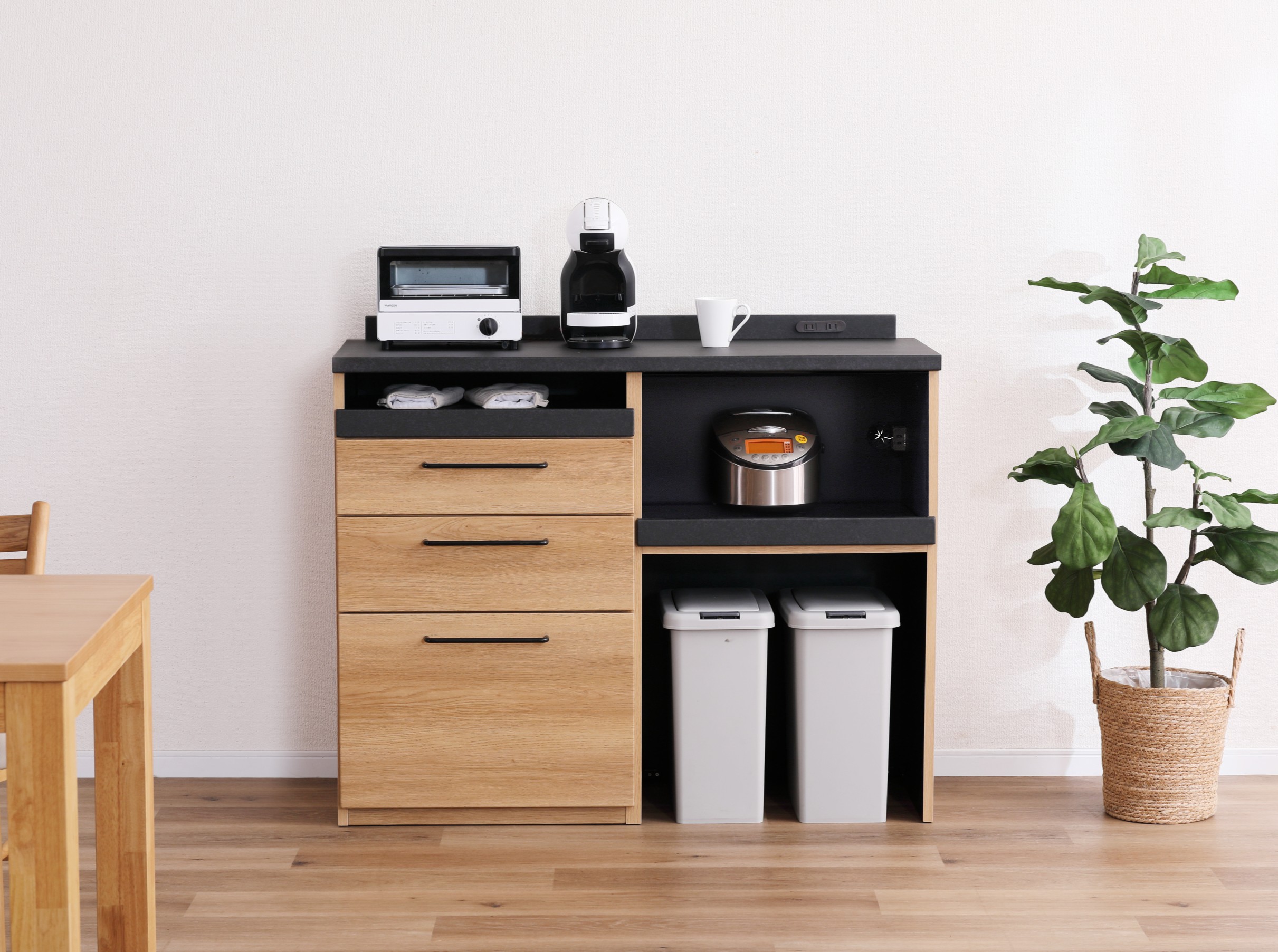 KALEB サイズ 画像参照 素材 プリント化粧繊維板 ブランド KALEB(カレブ) お問い合わせはこちら セラミック柄と木目のハイブリッド バックボードを無くすことで圧迫感を軽減。また背面のコンセントを隠すことなく使用できます。ブラックとナチュラルのツートンカラーが印象的なキッチンボードです。 関連商品 KJ Nexia Cafe TRIM