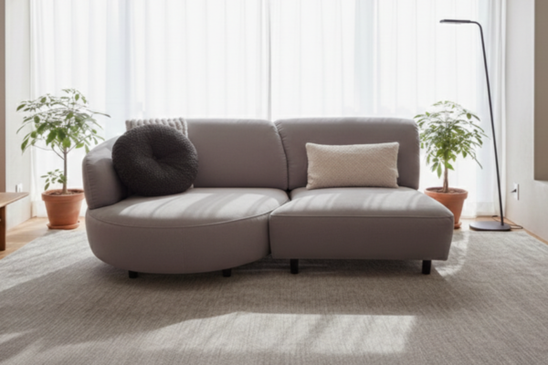 どの角度から見ても包容力を感じられる、安定感のある佇まい。カウチ部分では、脚を伸ばして深く寛いだり、お子様やゲストと並んで座ったりと、思い思いの時間を過ごせます。家族の団欒にも、ひとりのリラックスタイムにも寄り添うデザインです。