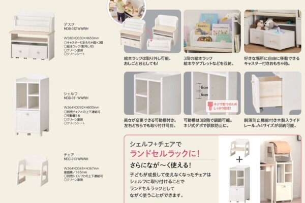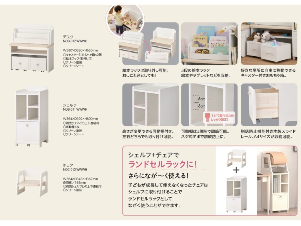 Muppu サイズ 画像参照 素材 プリント化粧繊維板 ブランド Muppu(ムップ) お問い合わせはこちら モンテッソーリ教育の理念に沿い開発された、子供と一緒に成長する家具 幼少期から使えるキッズデスクから、大きくなったら組み替え学習デスクへ。子どもの自己教育力の伸ばす発想のシリーズです。 関連商品 LatreeBookEnd2 SquareMirror Crane CF-406