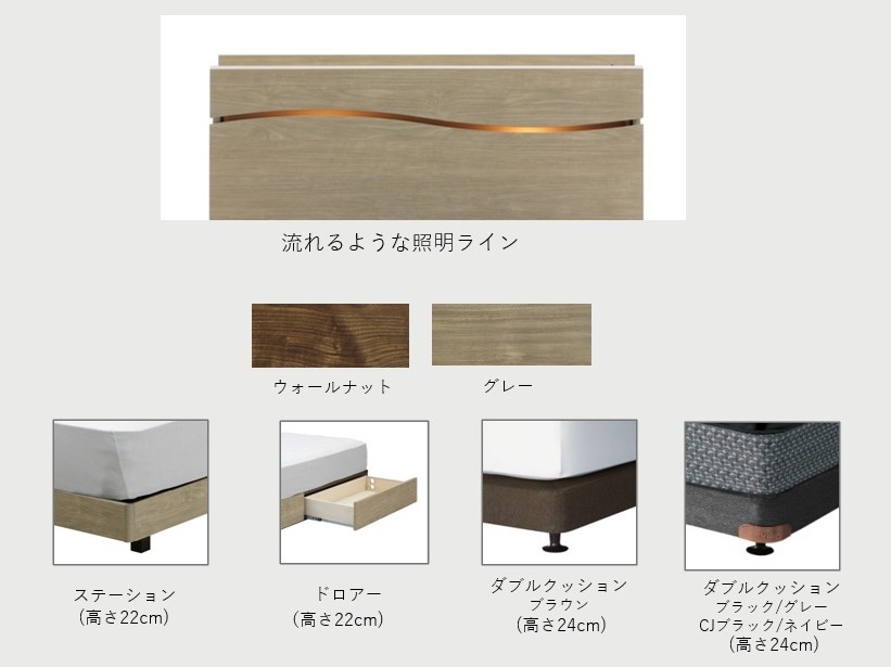 Sache サイズ シングル W98×D208×H82 cm セミダブル W121×D208×H82 cm ダブル W141×D208×H82 cm ワイドダブル W153×D208×H82 cm 素材 プリント化粧繊維板 特徴 国産商品 ブランド Sache(サシェ) お問い合わせはこちら 一筋の流れるような照明ライン 厚み12cmの薄型キャビネットタイプ。流線形の照明が特徴で2台並べて設置しても1本の曲線になります。 関連商品 TCB233 Hagmil2400 西海 STATERY60