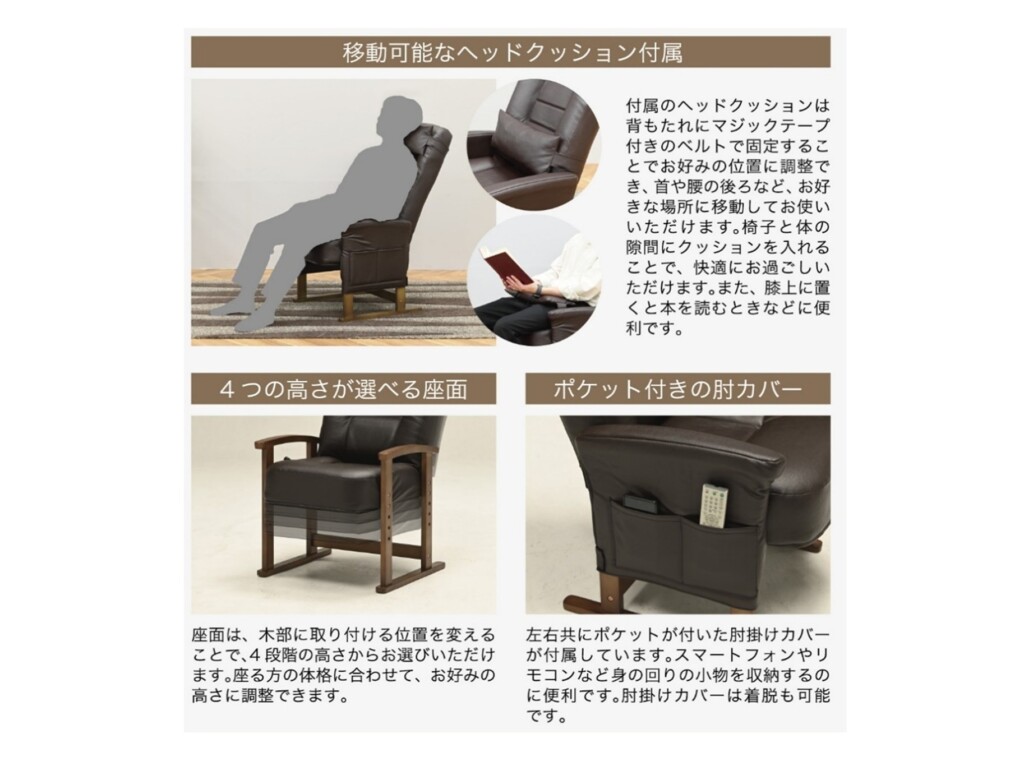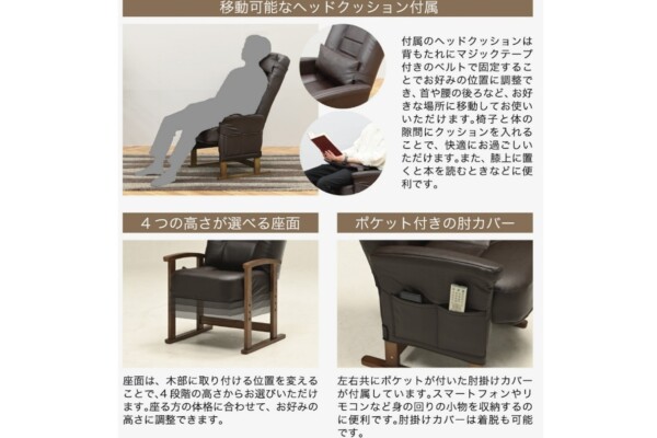Warabi サイズ W58×D64~108×H94/98/102/106(SH31/35/39/43) ㎝ 素材 張地 PVC 内材 ウレタンフォーム 脚部 ラバーウッド ブランド Warabi(ワラビ) お問い合わせはこちら メモリーフォームを使用した疲れにくいリクライニングチェア 座面と背面にメモリーフォーム(低反発ウレタン)を使用し、体圧を分散して長く座っても体に負担が少なく疲れにくい椅子です。最も負荷のかかるギア部分には、日本メーカー製の部品を採用し、耐久力にも優れています。 関連商品 QUINTON Waffle Flare Montel