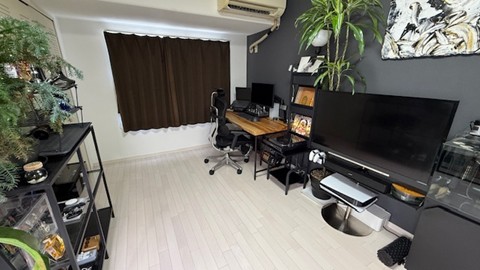 インテリアグリーンとモダンテイストのインテリアがとっても素敵です!お客様のこだわりの詰まったお部屋に弊社の一枚板を加えて頂き、とってもうれしいです。